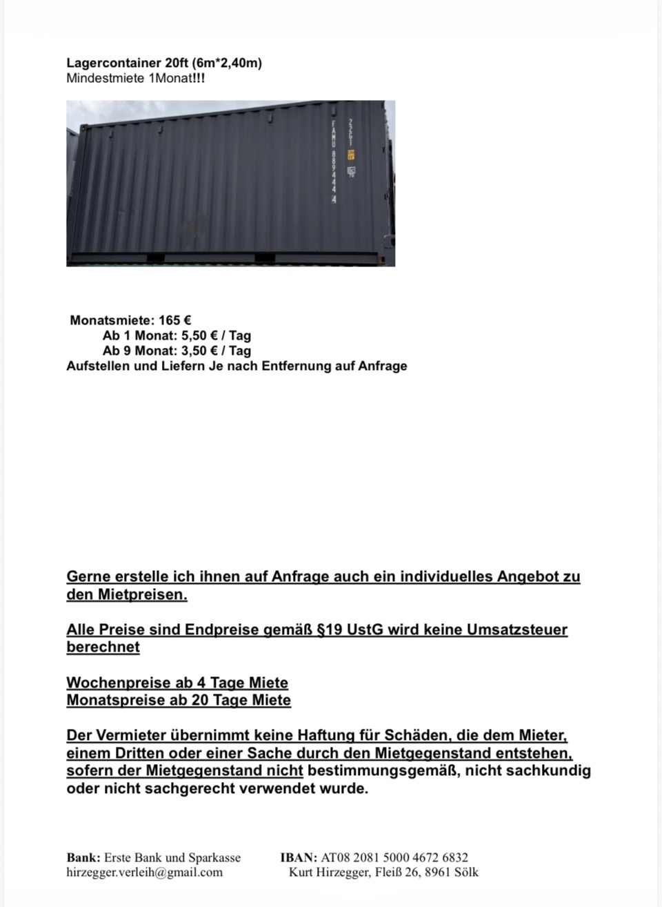 Wichtige Informationen zu unseren Mietpreisen